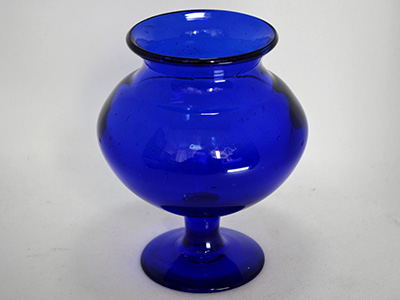 | Boda, Sweden フラワーベース ブルー デザイン: Erik Hoglund 直径:12.7cm 高さ:15.5cm 1950年代後半にエリック・ホーグルンドが打ち出したのは 当時の主流であった洗練されたガラス製品とは全く異なる 気泡入りのいびつなフォームの作品達でした。 その斬新な試みに人々は心を奪われました。 深いコバルトブルーのベース。 ゴブレットを思わせる足つきのフォームです。 炭酸がはじける瞬間を閉じ込めたような姿には 生命が宿っているかのような力強さが感じられます。 今回入荷分にはサインは入っていません。 台座部分に小さな白い点が見られます。 また、口部分に気泡の割れやざらつきがあります。 (一番下の写真参照) |