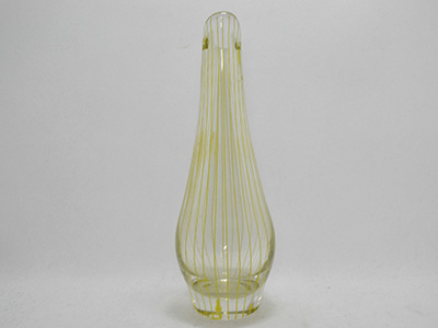 | Johansfors, Sweden ベース 吹きガラス デザイン: Bengt Orup 1950年代 直径: 7cm 高さ: 20cm スウェーデンのモダン・デザインを牽引した Bengt Orupが手掛けたフラワーベース。 なだらかなカーブの表面を流れるように 繊細なイエローのラインが刻まれています。 Johansforsのアートディレクターを務め、 絵画や彫刻などの分野でも活躍した彼の功績は その後の世代のアーティスト達にも 大きな影響を与えたそうです。 内側の底部分に薄いカルキ跡がありますが 全体的には比較的良好な状態です。 |