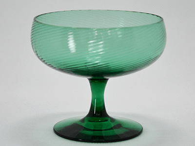 | Gullaskruf, Sweden デザートグラス グリーン デザイン: Hugo Gehlin 直径:9.8cm 高さ:8.3cm スタイリッシュなムードが漂うデザート/クーペ・グラス。 爽やかなグリーンの吹きガラスです。 側面には斜線の筋が入れらたシックなデザインです。 窓ガラスのメーカーとして誕生し、その後は1980年代まで ガラス食器やインテリア装飾としての作品を製造していた スモーランド地方のガラスメーカーGullaskruf。 SVENSKT TENNのためのガラス製品も生産していました。 全体的に良好な状態を保っています。 |