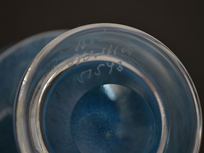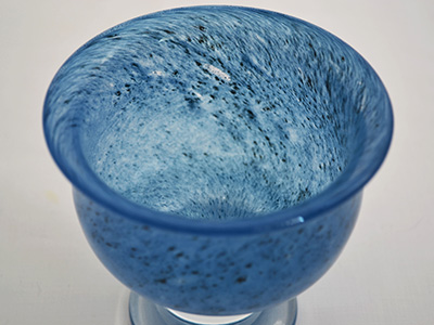 | Boda, Sweden Talatta ボウル 1972年 デザイン: Bertil Vallien 直径:10,4cm 高さ:10.5cm ガラス作家の第一人者であり、陶芸家、彫刻家、デザイナーと マルチな分野で才能を発揮するBertil Vallienが手がけた Talattaシリーズの足つきボウル。 ギリシャ語で海という名前が込められたこの作品は 青い渦に吸い込まれるような雰囲気を感じさせます。 透明な足の底部分にサインが刻まれています。 全体的に良好な状態を保っています。 |