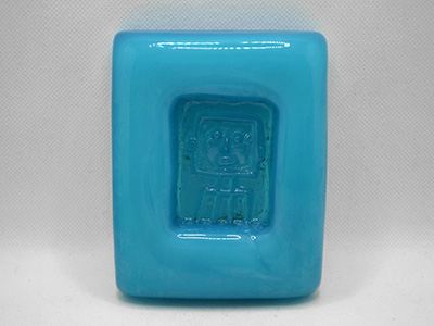 | Boda, Sweden アッシュトレイ ポートレート ターコイズブルー デザイン: Erik Hoglund 8.8×11.2cm 高さ:2.9cm 芸術家を志していたErik Hoglundは当時新しいデザインを もたらす人材を求めていたBodaにスカウトされ アートガラスの世界に足を踏み入れました。 1957年に生産が始まった型押しガラスの灰皿は 動物、十二星座、人の姿などバリエーション豊かな モチーフやカラーでコレクターの心をくすぐるシリーズです。 中央に型押しされたロボットのように見える四角い顔の人物は ホーグルンド自身のセルフ・ポートレートだそうです。 乳白色の微妙な混ざり具合も味わいがあります。 窪みのところどころに黒ずみが見られます。 |