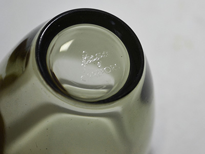 | Orrefors, Sweden Fuga ボウル グレー デザイン: Sven Palmqvist 直径:6.2cm 高さ:6.5cm スウェーデンを代表するガラス作家Sven Palmqvistが手がけた Fugaシリーズよりスモーキーグレーのボウル。 スリムで小ぶりなサイズのため ショットグラスとしても使えそうです。 Palmqvistが研究開発した遠心分離システムで生み出された Fugaシリーズは1955年の国際博覧会(H55)で注目を集め、 その2年後にはミラノ・トリエンナーレにてグランプリを獲得。 カラーやサイズが豊富で、スタッキング収納も可能なため スウェーデンでもコレクターの多いシリーズです。 わずかなスクラッチ以外は良好な状態です。 |