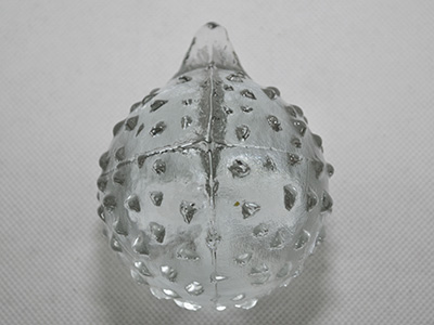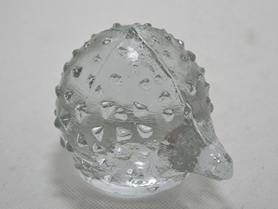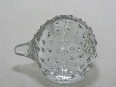 | Pukeberg, Sweden クリスタル フィギュリン はりねずみ Igelkott 7.1×9.2×6.1cm 丸いフォームにポコポコと突起がついたハリネズミのフィギュリン。 かなりずっしりと重みがあるため(約450グラム) ペーパーウェイトとして作られたようです。 中央にプレスクリスタルを結合させたラインが入っています。 側面にぶつけたような傷跡が見られます。 (一番下の写真参照) |
