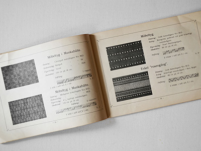 | Ny Vafbok I Elin Johansson, Sigrid Palmgren 1912年出版 124ページ +広告8ページ スウェーデン語 長年に渡ってスウェーデンの織愛好家たちに 大きな影響を与えた図案集です。 家具、衣類の生地、カーテン、ナプキン、テーブルクロス等 一般的な目的で使用する織に加え、 ムンカベルテ、ローゼンゴング、ドレル織といった スウェーデンの伝統織や民族衣装用の織など、 合計58種類の織のパターンが紹介された1冊。 この本は何度も重版を重ねていますが 今回入荷分は初期のタイプのため、タイトルの綴りには 古いスウェーデン語が用いられています。 E. JohanssonとS, Palmgrenはそれぞれ織の学校を運営し 手工芸の世界では一目を置かれる存在だったようです。 経年による紙質の黄ばみ、汚れ、傷みなどが目立ちます。 また、タイトルページに名前の書き込みがありますが 本の内容的には問題はありません。 |
