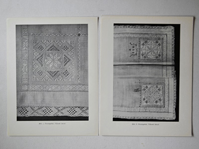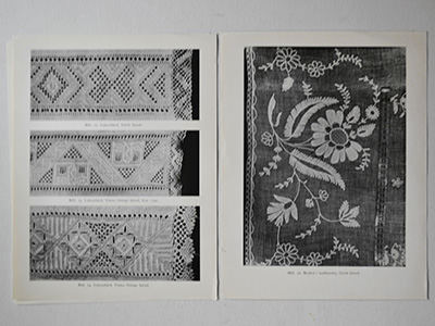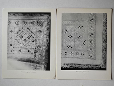 | Vitsom fran Kristianstads Lan Kristianstads Lans Hemslojdsforening 目次:1枚 + 資料シート:片面20枚、 スウェーデン語 1947年、クリシャンスタード手工芸協会による 白糸刺繍展のために収集された スウェーデン南部の刺繍コレクションの資料集。 カゴ用の飾り布(8種類) 花婿衣装などの刺繍部分(11種類) ベッドリネンのボーダー刺繍(3種類) スコーネ地方のフリー刺繍(3種類) カバーは部分的にテープで補強されていますが 経年のため傷みや劣化がかなり目立ちます。 シートには軽い黄ばみがありますが 比較的良好な状態を保っています。 Handarbetets Vanner(HV/手工芸友の会)の 教会テキスタイル修復部門・Liciumの旧蔵書のため カバーにスタンプと貸し出し用ポケットの跡、 番号などの書き込みがあります。 |