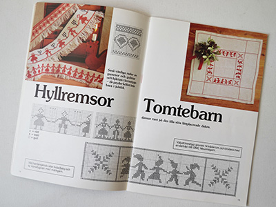 | Julens Broderier Gia Wiman-Ringquist 1988年 51ページ スウェーデン語 スウェーデンの生活情報雑誌Ica Kurirenが 読者から募った各家庭に伝わるクリスマス関連の 刺繍作品を図案化した内容の一冊。 サテンステッチ、クロスステッチ、ゴブランステッチなど 刺繍技法やスタイルごとに分類されています。 古いものでは100年以上前の作品も含まれ 伝統的クリスマスを伝える内容になっています。 裏表紙に目立つ折れ線がありますが 全体的には比較的良好な状態です。 |