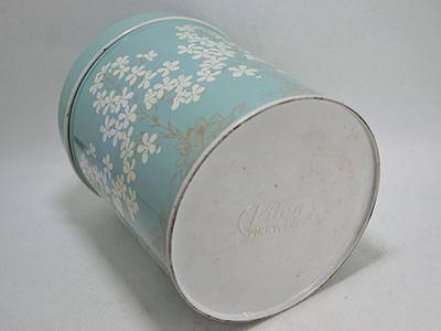 | Vilen Finnware, Finland クッキー缶 パステルブルー 直径:11cm 高さ:13.2cm 淡い水色を背景に白い小花が咲いた やさしい雰囲気のキャニスター。 側面の一部にラベルを剥がしたような跡があり その部分は周辺よりも色合いが若干明るめです。 擦れや軽いへこみ、汚れなどの使用感はありますが 古いブリキ缶としては使用に問題の無い良い状態です。 |