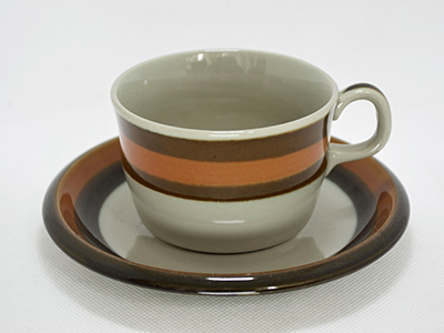 | Rorstrand, Sweden Annika コーヒー・カップ&ソーサー 1972-81年 デザイン: Marianne Westman カップ 直径:8.5p9 高さ:6.8cm ソーサー 直径:14.3cm ストーンウェア素材にハンドペイントで 幅広のラインを装飾したカップ&ソーサー。 1970年代らしい明るさが感じられます。 実は家事は苦手だったマリアンヌ・ウェストマンは キッチンを楽しく彩る才能には恵まれ、 ローストランドの人気デザイナーとして 数々のシリーズを手掛けました。 全体的に良好な状態を保っています。 |