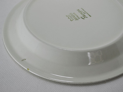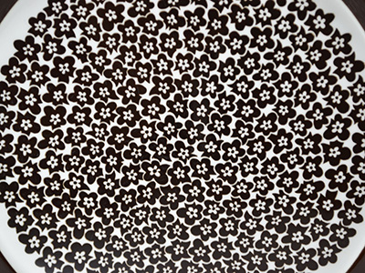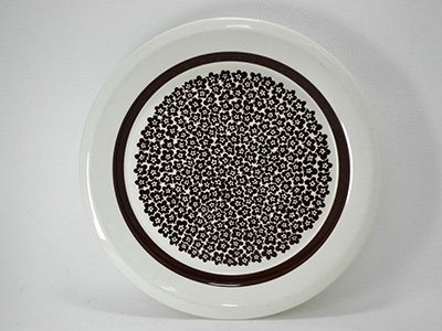 | Arabia, Finland Faenza プレート デザイン: Inkeri Seppala, Peter Winquist 直径:19.5p 小花模様で埋め尽くされたFaenzaシリーズ。 すっきりとした可愛らしさで人気があります。 太いラインはハンドペイントで描かれています。 光に当てるとお皿表面に軽いスクラッチがありますが 見た目には比較的きれいな状態を保っています。 裏面のふちに2ミリ程度の欠けがあります。 (一番下の写真参照) |