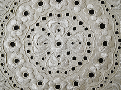 オフホワイトの色合いで花模様の刺繍を