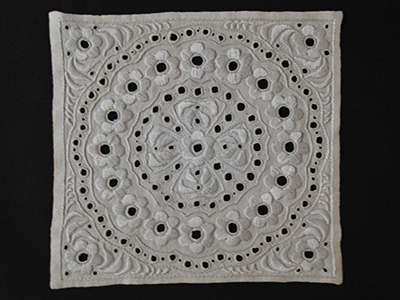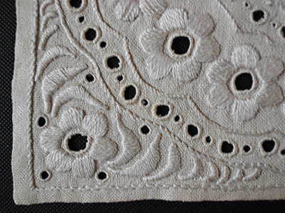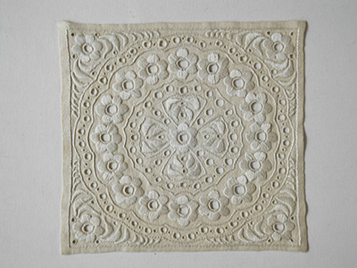 A448 白糸刺繍 花モチーフ 29.5×27.5センチ