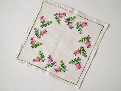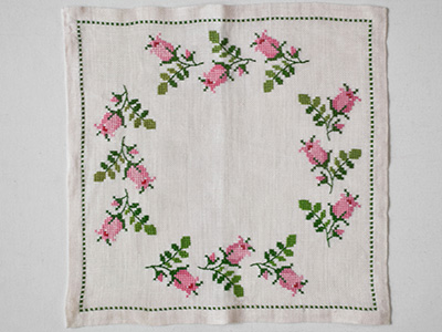 フェミニンなデザインのクロスステッチ作品。