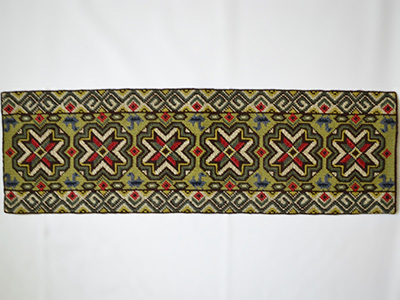 | トゥヴィスト刺繍 八芒星 ロングサイズ スウェーデン 75×24cm 中央に規則的に並んだ伝統的な星のモチーフや 幾何学模様などで構成されたロングサイズの作品です。 裏面に壁に飾るための糸の輪が 数か所に縫い付けられています。 スウェーデンでは南部スコーネ地方を中心に 中世から盛んに作られていたトゥヴィスト刺繍。 ウールを用いた丈夫な作りの刺繍ため クッションや長椅子用の敷物としても使われたそうです。 下地のキャンヴァスに汚れた箇所がありますが (一番下の写真参照) 全体的には良好な状態です。 |
