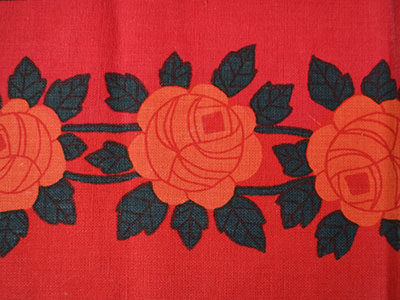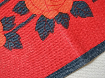 レトロなバラ模様がハンドプリントされた