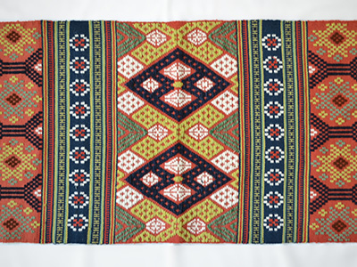 | Halvkrabba ハルヴクラッバ織 スウェーデン 100×41cm +フリンジ約8cm スコーネ地方と周辺の伝統的な織技法ハルヴクラッバ織。 フォークロアな色使いの作品です。 多色使いでも決して派手な印象ではなく 落ち着いた品の良さが感じれます。 一部に毛糸の飛び出した箇所がありますが 全体的に状態の良いきれいな仕上がりです。 |
