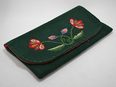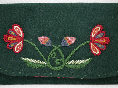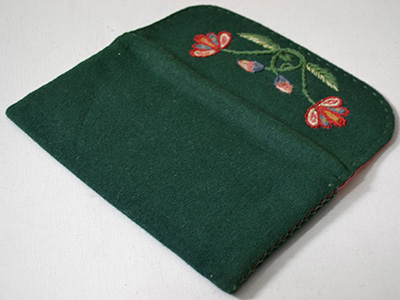 | ウール刺繍 ウォレット スウェーデン 横:23×縦:12.5cm ボトルグリーンの深い色合いのウール生地に 花模様の刺繍がほどこされたウォレット。 ゆったりとしたサイズ感のためポーチや 小さめのクラッチバッグとしても活用できそうです。 ウール生地の濃い色合いと内側の 赤系の手織り生地のコントラストが効いています。 名刺サイズのカードが2枚入るポケット付きです。 ウール刺繍特有の愛嬌を感じさせるステッチですが 全体の完成度はかなり高いと思います。 |