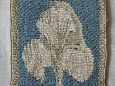 | フレミッシュ織 アイリス スウェーデン デザイン: Maaru Uotila 11×32.5センチ 白やアイボリー系の色糸を用いてアイリスの花を 控えめな印象に仕上げた細長いフレミッシュ織作品。 グレートーンのブルーが花のまわりを取り囲み 淡く儚げな世界観を醸し出しています。 裏面の糸は内側にまとめられています。 ゆがみの無いとてもきれいな仕上がりです。 |