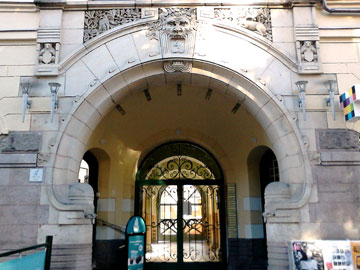 神話の中に出てくるような装飾がほどこされたエントランス。