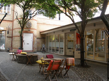 ショッピング通りに面しているこの建物の下の階はカフェやブティック