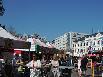 ひさしぶりに明るい天気の1日。 カフェも外のテーブルの方が混んでいます。 実はけっこう寒いのですが、それでも外を好む北欧人たち。