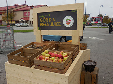 何かと思ったらジュースメーカーの宣伝スペース。 好きな具材でオリジナルのジュースを作ってくれました。 選んだのはリンゴ、オレンジ、赤いビーツ、生姜。 寒空の下で味わった感動の美味しさ!!でした!