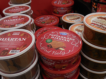 スーパーにクリスマスの食料品が並び始めました。 ジンジャークッキーはお徳用サイズ! 寒い季節に食べたくなるほろ苦い甘さです。
