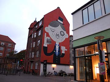 週末にコペンハーゲンで行われたマーケットの後 お腹も空いたし疲れたのでアマーへ移動。 ショッピングセンターの横に可愛い壁画を発見。 どんどん日没が早まっている北欧です。