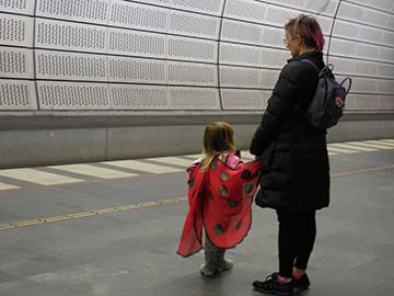 駅のホームで見かけた親子。 何故か女の子は上着の上から水玉のひらひら姿。 もしやハロウィンに着た衣装が気に入ったのかな?