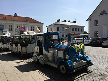 本当にここは北欧なのかと疑うほどの暑い毎日です。 日向ぼっこが大好きなスウェーデン人ですら 暑さに耐えきれず日陰で過ごしています。 写真はイスタッドの観光用電車です。