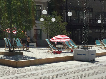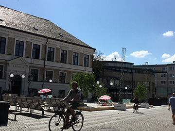 ルンドの中心部に設置された砂場。 パラソルなども置いて砂浜を演出しているようです。 ここのところ暑すぎるのか誰も利用していません・・・。