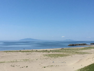 天気が良かったのでランチは海の近くへ。 遠くに見えるのは男鹿半島です。 まだ海開きしていないせいかとても静かでした。