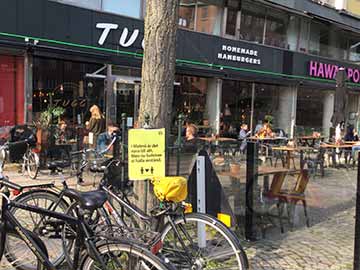 マルメ市で見つけた張り紙: 「マルメには何でも近場にありますが 今はお互いの距離を保つよう心がけましょう」
