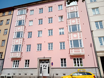 スウェーデンの機能美といえばFUNKIS。 もちろん建築にも取り入れられています。 初期の1930年代に建てられたこのビルは パステルカラーの外壁で個性を出しています。