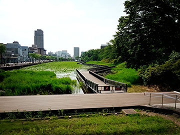 想像以上に暑い秋田に里帰り中です。 お向かいの千秋公園に設置中の遊歩道は完成間近。 一般公開は7月11日なので、お堀の蓮がきれいに 咲くころですね。私の滞在中に間に合わなくて残念。