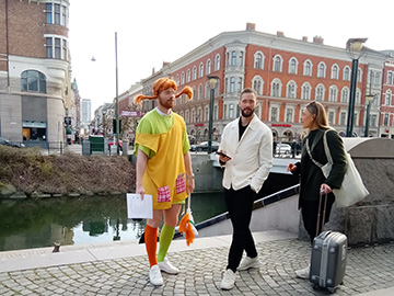 どこからともなく聞こえる大爆笑と軽快なリズム。 北欧ではお馴染みの長くつ下のピッピのテーマ曲と コスプレ姿の髭もじゃ男性。 本日街でいちばん笑いと注目を集めていました。