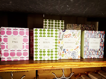 デパートのギフトコーナーのさりげなく置かれた リンドベリの陶器やテキスタイル柄の小箱。 中身はキャンディなどのスイーツでした。 ちょこっとした贈り物に良さそうですね。