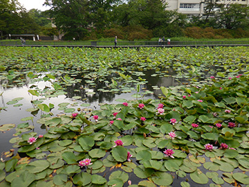 梅雨入りしたばかりの秋田に居ます。 ショップの向かい側に広がる公園のお堀には 蓮の花が咲き始めていました。 花を眺めながら遊歩道を歩くのもいいですね。