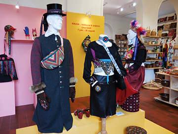 スコーネ・ヘムスロイド協会ブティックにて 民族衣装を大胆に発展させた特別企画が展示中。 個性と伝統が複雑に絡み合って ちょっとパンクっぽい雰囲気かも。