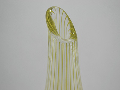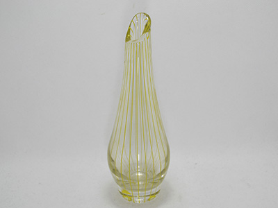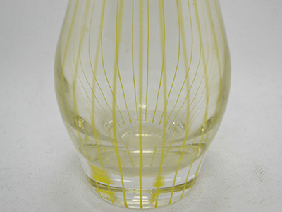 | Johansfors, Sweden ベース 吹きガラス デザイン: Bengt Orup 1950年代 直径: 7cm 高さ: 20cm スウェーデンのモダン・デザインを牽引した Bengt Orupが手掛けたフラワーベース。 なだらかなカーブの表面を流れるように 繊細なイエローのラインが刻まれています。 Johansforsのアートディレクターを務め、 絵画や彫刻などの分野でも活躍した彼の功績は その後の世代のアーティスト達にも 大きな影響を与えたそうです。 内側の底部分に薄いカルキ跡がありますが 全体的には比較的良好な状態です。 |