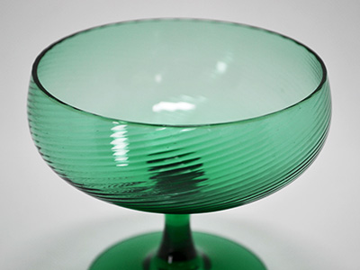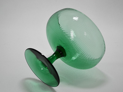 | Gullaskruf, Sweden デザートグラス グリーン デザイン: Hugo Gehlin 直径:9.8cm 高さ:8.3cm スタイリッシュなムードが漂うデザート/クーペ・グラス。 爽やかなグリーンの吹きガラスです。 側面には斜線の筋が入れらたシックなデザインです。 窓ガラスのメーカーとして誕生し、その後は1980年代まで ガラス食器やインテリア装飾としての作品を製造していた スモーランド地方のガラスメーカーGullaskruf。 SVENSKT TENNのためのガラス製品も生産していました。 全体的に良好な状態を保っています。 |