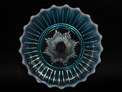 | Davidson, England Pearline Brideshead プレート 1890年代 直径: 14.6cm イギリスのヴィクトリア朝時代(1800年代末)に生産された オパールセントのふちどりが特徴のPearlineシリーズ。 Bridesheadモデルの小ぶりなプレートです。 ムーンシャインと呼ばれる神秘的な青い色です。 軽いスクラッチが見られますが 全体的には比較的良好な状態です。 |