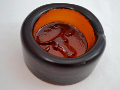 | Boda, Sweden アッシュトレイ Cow/Ko アンバーカラー デザイン: Erik Hoglund 直径:7.3cm 高さ:3.5cm 芸術家を志していたErik Hoglundは当時新しいデザインを もたらす人材を求めていたBodaにスカウトされ アートガラスの世界に足を踏み入れました。 動物、十二星座、ポートレートなどバリエーション豊かな モチーフやカラーでコレクターの心をくすぐるシリーズです。 ガラスの繊細なイメージを覆す、肉厚で原始的な素材感の中に 雄牛の表情を正面から大胆に型押ししています。 側面に小さなスクラッチが見られます。 |
