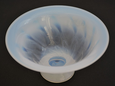 | Boda, Sweden コンポート 吹きガラス オパールセント デザイン: Monica Backstrom 直径: 13cm 高さ:7cm 1965年からBodaのデザイナーとして活躍し、数々の独創的な 作品を生み出したモニカ・バックストロムが手掛けた 神秘的な乳白色の吹きガラスコンポート。 白い渦の奥深くに吸い込まれていくような作品です。 コンポートの底にサインが刻まれています。 側面に貼られたBodaのシールは剥がれかけています。 |