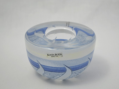 | Kosta Boda, Sweden Taiga ボウル キャンドルホルダー ハンドペイント デザイン: Monica Backstrom 2000年 直径:9.8cm 高さ:6cm 1965年からBodaのデザイナーとして活躍し、後にKosta Bodaでも 独創的な作品に挑み、アートガラス界に大きな影響を与えた モニカ・バックストロムが手掛けたTaigaシリーズの ティーライトキャンドル用のホルダーです。 Taigaとは北欧の大地に広がる壮大な針葉樹林です。 表面にはトライバル・アートを思わせる 豪快なハンドペイント装飾が施されています。 かなりの厚みと重量感があります。 ハンドペイント部分にサインが潜んでいます。 特に目立つ使用感の無い良好な状態です。 ※ 上部に貼られた注意書きのシールには 手描装飾のため食洗器を避けるようにと記されています。 |