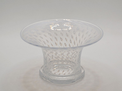 | Kosta Boda, Sweden Peacock ベース デザイン: Bertil Vallien 2002年 直径:13.2cm 高さ:7.5cm ガラス作家の第一人者であり、陶芸家、彫刻家、デザイナーと マルチな分野で才能を発揮するBertil Vallienが手がけた Peacockシリーズのベース。 ガラスの渦の中に散りばめられた乳白色が 神秘的な世界観を感じさせます。 底部分にサインが刻まれています。 内側の底に小さな黒点が混入していますが 目立つ使用感の無い大変良好な状態です。 |