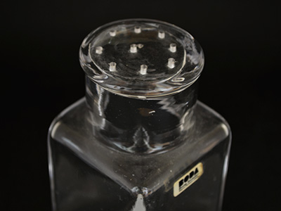 | Boda, Sweden Kvadrat シュガー・シェイカー デザイン: Signe Person-Melin 6.3×6.3cm 高さ:12.6cm 陶芸家として既に成功を収めていたSigne Persson-Melinは 1967年にBodaから誘いを受けデザイナーとして いくつかのシリーズを手がけました。 1969年に発表した四角い吹きガラスのKvadratは 保存容器に美しさを備えたデザインが人気となりました。 今回入荷分はお砂糖用のディスペンサーです。 上部中央に貫通していない小穴があります。 栓の周辺の擦れは製造過程で生じた跡のようです。 メーカーとデザイナー名が入ったシールは 角部分にはがれが見られます。 全体的に使用感の少ない良好な状態です。 |