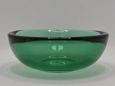 | Orrefors, Sweden Fuga ボウル グリーン デザイン: Sven Palmqvist 直径:11.5cm 高さ:4.5cm スウェーデンを代表するガラス作家Sven Palmqvistが手がけた Fugaシリーズよりグリーンの浅いボウルです。 一般的なラウンド型ボウルと比較して 肉厚で重量感があります。 また、グリーンはそれほど頻繁に見かけないため 流通量が少なかった可能性があります。 Palmqvistが研究開発した遠心分離システムで生み出された Fugaシリーズは1955年の国際博覧会(H55)で注目を集め、 その2年後にはミラノ・トリエンナーレにてグランプリを獲得。 カラーやサイズが豊富でコレクターの多いシリーズです。 裏底と側面の底付近に軽いスクラッチがありますが 全体的には良好な状態を保っています。 |