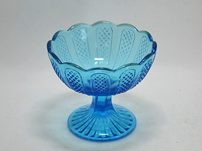 | Nuutajarvi, Finland シュガー・コンポート Piikki プレスガラス ブルー 直径:9.3cm 高さ:8.2cm 澄み渡る青空のような爽やかな色合いのシュガー・コンポート。 小さめなのでアイスクリームなどにも ちょうど良いサイズかもしれません。 まだ砂糖が高価だった時代はこのような足つきの器に 砂糖を贅沢に見えるよう盛り付けていたそうです。 プレスガラス特有の結合部分のラインが見られますが 特に目立つ使用感の無い良好な状態です。 |