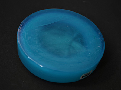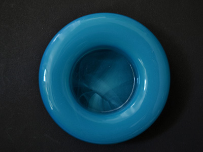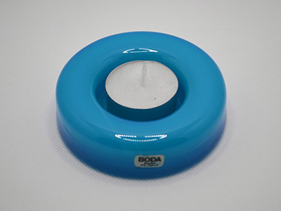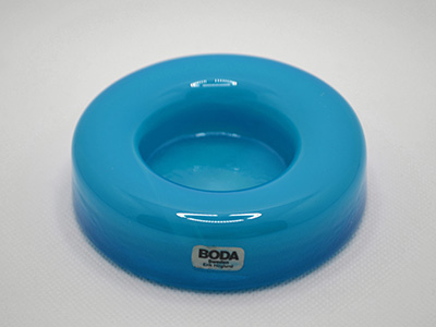 | Boda, Sweden キャンドルホルダー ターコイズブルー デザイン: Erik Hoglund 直径:8.8cm 高さ:2.5cm 芸術家を志していたErik Hoglundは当時新しいデザインを もたらす人材を求めていたBodaにスカウトされ アートガラスの世界に足を踏み入れました。 ティーライトキャンドルを置ける窪みがついた ドーナツ型の作品です。 澄み渡った青空のようなブルーです。 乳白色の微妙な混ざり具合も味わいがあります。 BODAのステッカーが残っています。 |