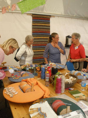 ヘムスロイド @ フェスティバル 2012年はスウェーデン各地で行われている夏のフェスティバルでもヘムスロイド関係のイベントが行われました。 ストックホルムのカルチャー・フェスティバルでは子供用の手工芸体験イベントが行われ、簡単に楽しめる作品制作にチビッコ達は熱中していました。 同じくマルメフェスティバルでもボビンやタッティングなどのレースワーク、ワイヤーワーク、ニッティングなどの体験コーナーが設けられ、またウール刺繍の歴史を紹介するレクチャーなども行われました。 写真はマルメフェスティバルの手工芸テント内の様子です。